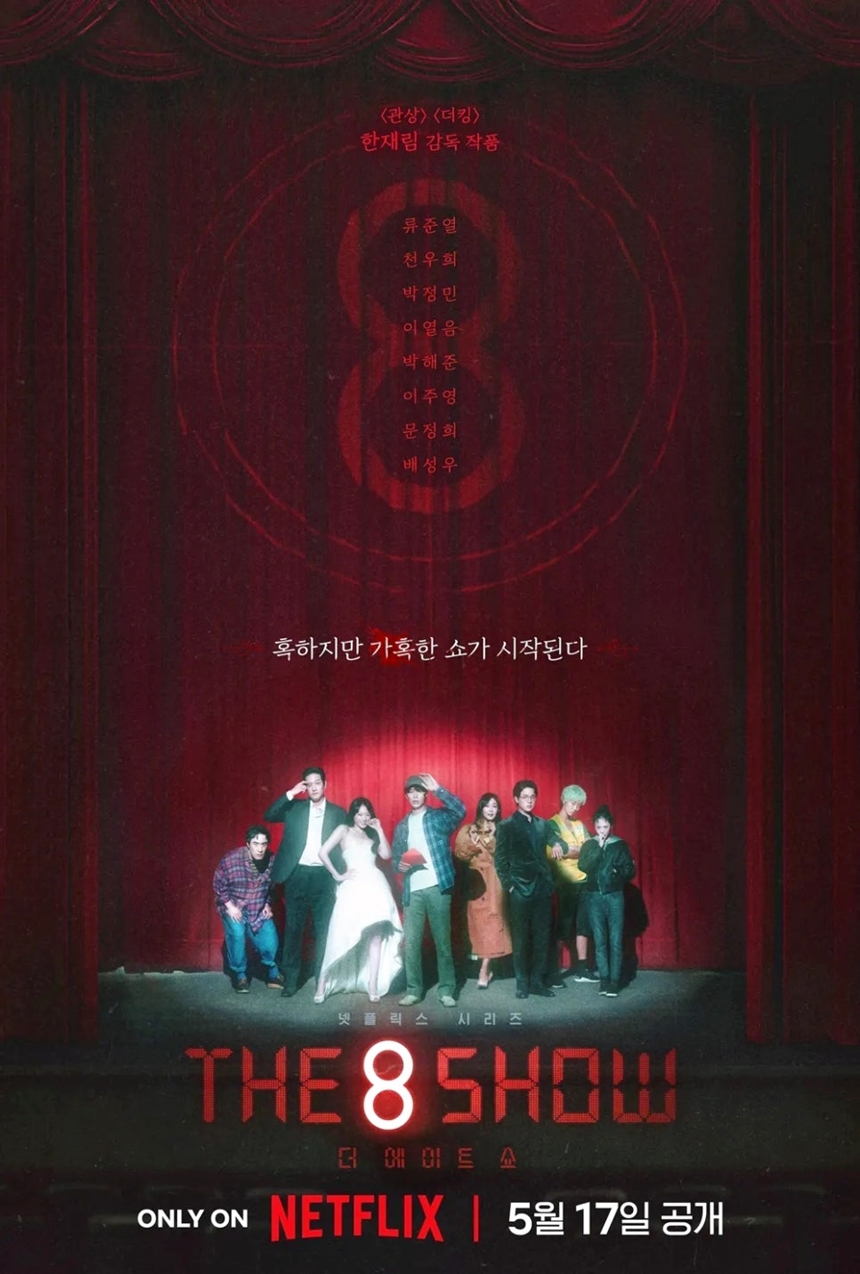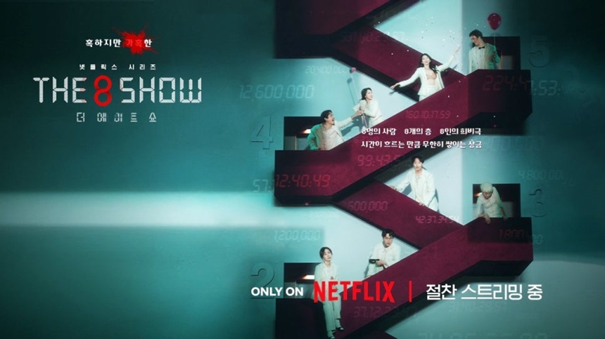 '더 에이트 쇼'는 웹툰 '파이게임'과 '머니게임'을 원작으로 삼아, 8명의 인물이 각기 다른 조건의 8개 층에서 벌어지는 이야기를 그려냅니다.