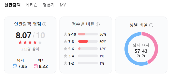 6.1 영화 밤낚시 실관람객 평점(24년 06월 25일 현재)