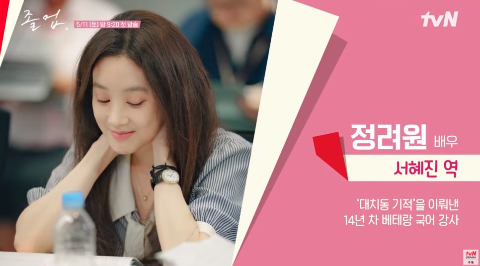 드라마 '졸업'은 대치동의 학원가를 배경으로, 학원 강사들의 사랑과 성장을 그린 로맨틱 코미디에요. 사전제작으로 이미 많은 기대를 모으고 있는 이 작품은, tvN 월화드라마를 책임질 주력작으로 꼽히고 있습니다. 정려원, 위하준, 소주연 등 연기파 배우들의 활약이 돋보이는 '졸업'은 본방송 외에도 TVING에서 재방송 및 다시보기를 통해 만나볼 수 있어요.