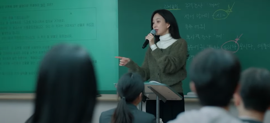 찬영고등학교 교사 역할이며 애들 앞에서 등급을 교란하는 짓하지 말라는 거 보니 강사를 별로 좋아하지 않는 것 같아요.